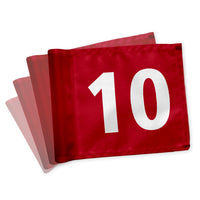 Puttinggreenflags 10-18, red with white numbers, double-sided, 200 gram fabric